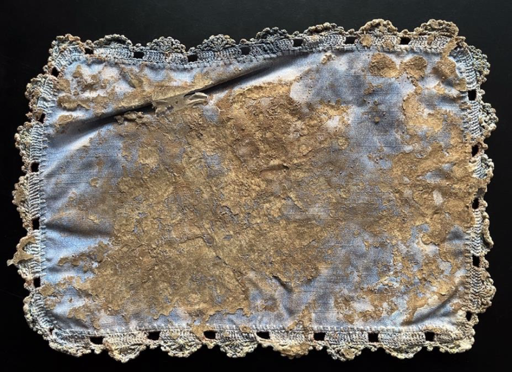 Table cloth, clay from mount Lebanon, indigo dye
