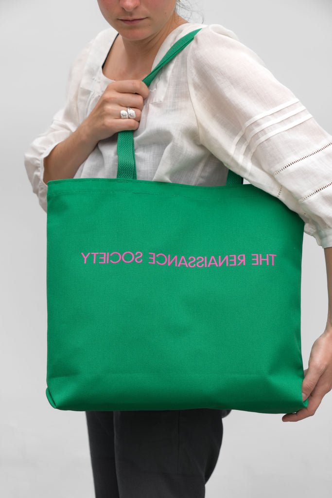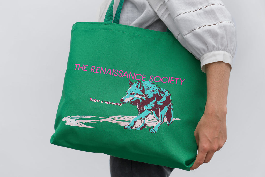 The latest edition of the Ren's member tote was designed by artist Shahryar Nashat, who, along with writer Bruce Hainley, worked on the MAY 13–JUL 2, 2023 exhibition at the Renaissance Society. The two-sided tote prominently features a wolf, which is a recurring image in his work.